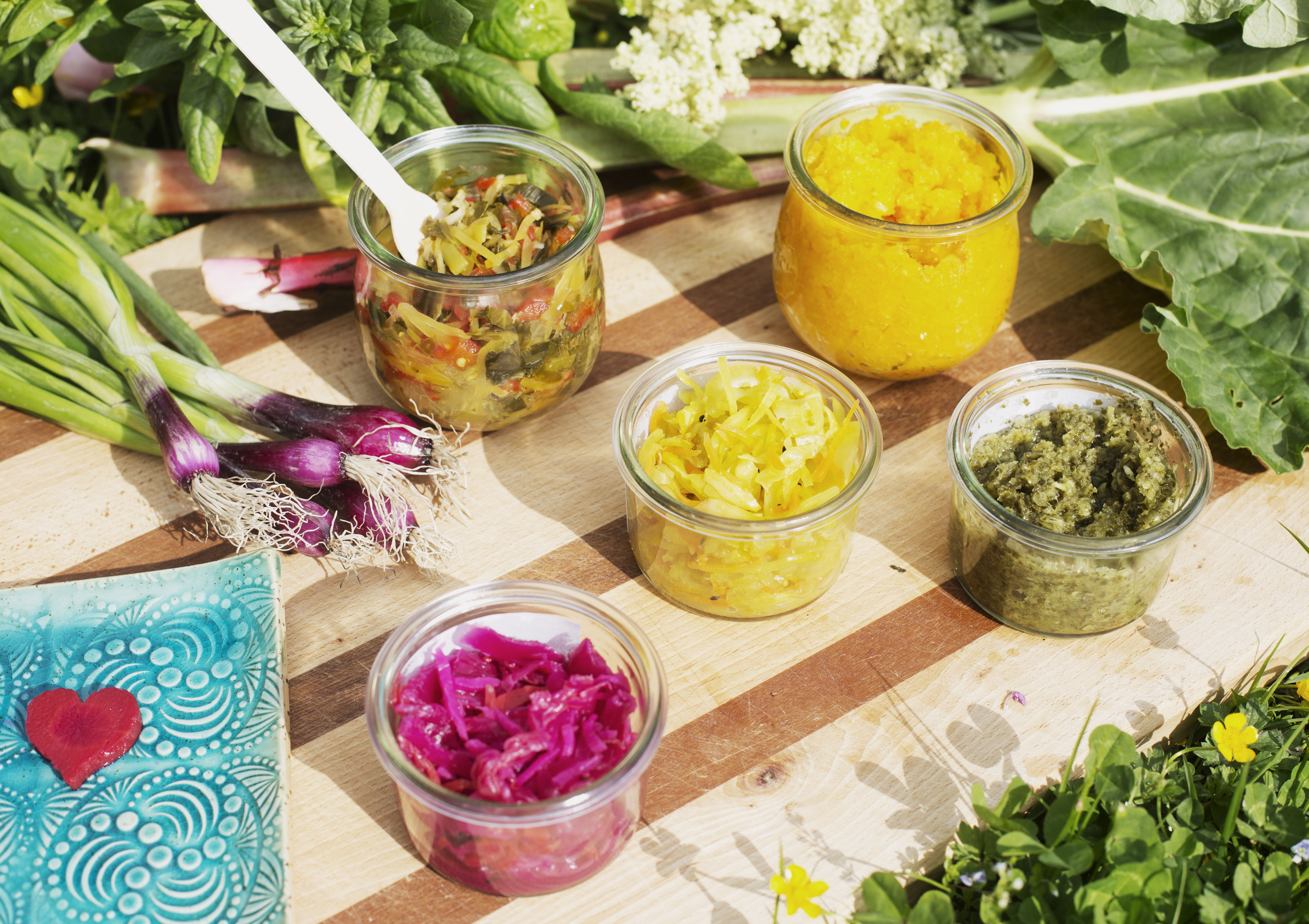 Schnippeln, mischen, stampfen...einmal quer durch den sommerlichen Gemüse- und Beerengarten! Mittels Milchsäuregärung verwandeln wir frisches regionales Biogemüse in saure Schmankerl. Eine traditionelle Methode, modern interpretiert: bunt gemischt, kreativ gewürzt und von der regionalen Gärtnerei bis zum bunt gefüllten Glas echte Handarbeit. So entsteht ein Kosmos an probiotischen Mikroorganismen und überraschenden Aromen, ein Fest für alle Sinne!